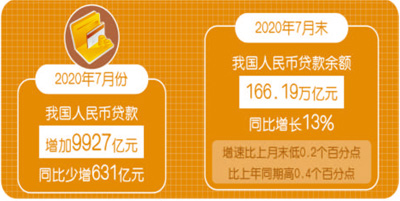 数据显示,7月份人民币贷款增加9927亿元,同比少增631亿元。分部门看,住户部门贷款增加7578亿元,其中,短期贷款增加1510亿元,中长期贷款增加6067亿元;企(事)业单位贷款增加2645亿元,其中,短期贷款减少2421亿元,中长期贷款增加5968亿元,票据融资减少1021亿元;非银行业金融机构贷款减少270亿元。与此同时,7月份人民币存款增加803亿元,同比少增5617亿元。其中,住户存款减少7195亿元,非金融企业存款减少1.55万亿元。