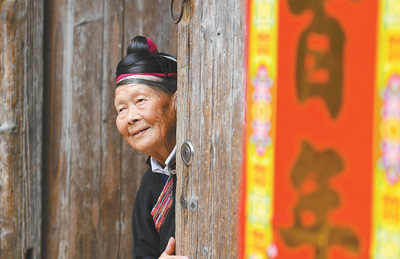 在福建省霞浦县半月里村,常常可以见到89岁的畲族老人钟莲娇穿戴民族服饰,为游客介绍畲族文化。