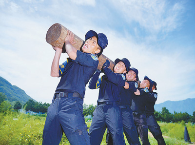 近日,北京海淀特警开展为期4周的训练活动,进一步提升特警队员在公路、乡间、丛林、山地等复杂地域环境下的技战术应用水平。图为8月14日,特警队员正在进行训练。