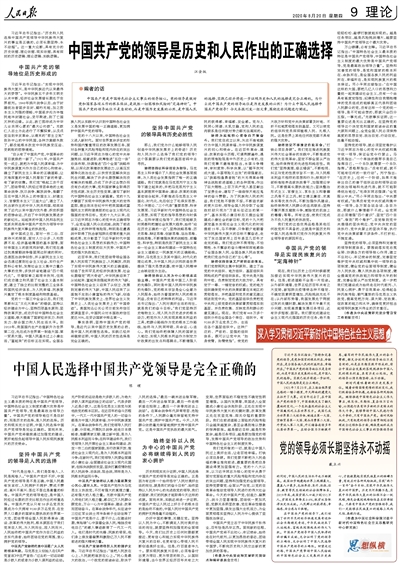 中国人民选择中国共产党领导是完全正确的