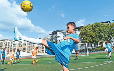 仁怀市实验小学是全国青少年足球特色学校、贵州省校园足球“菁英计划”试点学校,该校爱好足球的学生在暑假期间参加足球训练,提高球技,强健身体,享受足球运动带来的快乐。