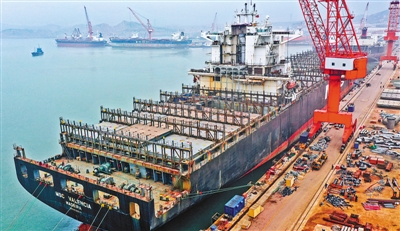 8月20日,在山东省荣成市鑫弘重工码头,山东鑫弘重工有限公司的工人在外籍货轮上进行维修改造作业。该公司的船舶维修业务已经拓展到俄罗斯、埃及、希腊等20多个“一带一路”沿线国家和地区。
