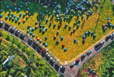 8月22日,在四川省广安市一处生态旅游区,露营区支满了游客的帐篷。