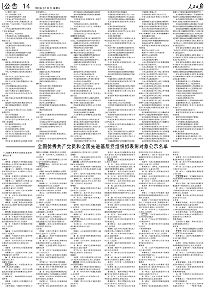 全国优秀共产党员和全国先进基层党组织拟表彰对象公示名单