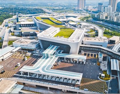 8月26日,深港间第七座陆路口岸——莲塘/香园围口岸正式开通,粤港澳大湾区再添一条物流大通道。口岸实行“两地两检”和车辆“一站式”查验通关模式,设计日通关能力为旅客3万人次、车辆1.785万辆次。图为日前拍摄的莲塘/香园围口岸。