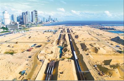 9月17日,斯里兰卡与中国“一带一路”重点合作项目科伦坡港口城举行奠基开工6周年纪念活动。斯里兰卡总理马欣达·拉贾帕克萨对港口城建设进展予以积极评价。图为9月3日航拍的港口城项目综合管廊施工现场。