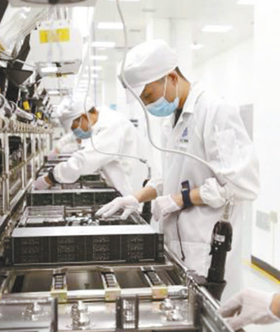 工人在湘江鲲鹏一期服务器生产车间工作。 |