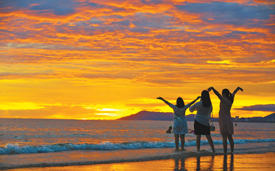 9月21日,海南三亚雨后放晴,海边晚霞美不胜收,游客在三亚湾驻足观赏。 |