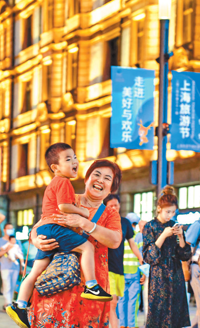 9月12日,游客在上海南京路步行街东拓路段游玩。 |