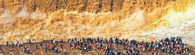 9月17日,游客在山西吉县黄河壶口瀑布景区游览观瀑。 |