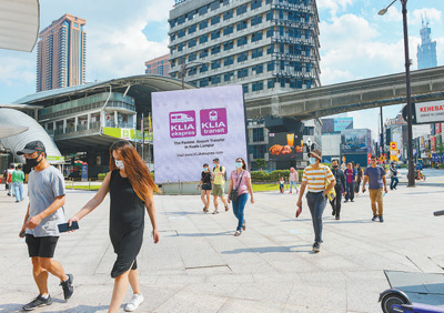 近期,东南亚多国疫情形势企稳,国内生产加速恢复,地区经济显露持续向好迹象,多国已允许大部分社会和经济活动恢复。图为近日马来西亚吉隆坡市民陆续恢复正常工作生活,戴着口罩走在街上。 |