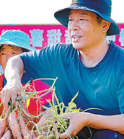 10月2日,天津武清周立营村,村民包文营一大早就下地,一锹下去,几个大烟薯(甘薯品种)便露了出来。“每亩地产量约7000斤,这片地产量大概有15万斤。加上300亩玉米,今年保守估计得多收10多万元。”包文营说。
