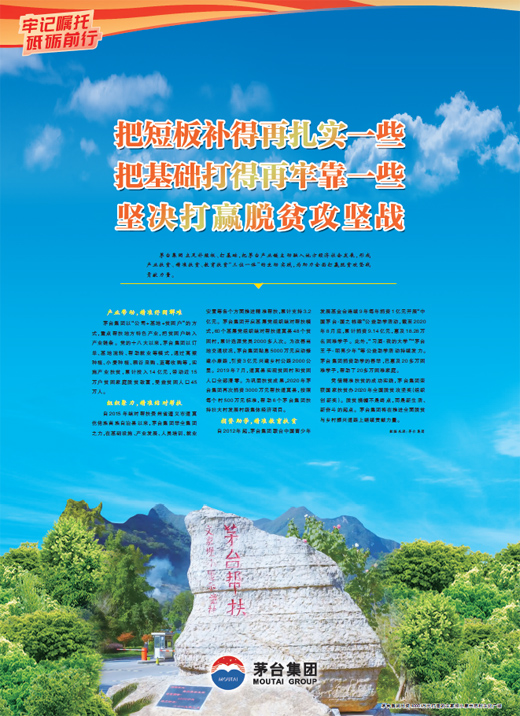 茅台集团立足补短板、打基础,把茅台产业链主动融入地方经济社会发展,形成产业扶贫、精准扶贫、教育扶贫“三位一体”的生动实践,为助力全面打赢脱贫攻坚战贡献力量。