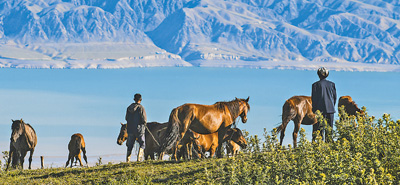 牧民达山·哈依达尔(右)和儿子帮村民代牧。 |