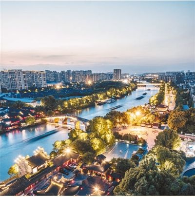 我在运河边已经整整住了十七年。从我的阳台上西望,运河的那一边,崭新的建筑群非常醒目。左前方的几幢别致的黄颜色建筑,是由大河造船厂改造而成的,现在叫运河七区。双休日的下午,我会沿着运河一路往南走。桥西的历史保护街区是常常会去的。迈过拱宸桥,白墙板壁黑瓦,每一块石板似乎都有丰富的故事。路边有家咖啡馆,那不只是一家咖啡馆,还是一个温馨的文化场所,经常会举办诗文朗诵、绘画、音乐等文艺活动。拱宸桥的正对面是几家大的国药馆,走累了,口渴了,一脚拐进国药馆,倒一杯免费的茶,冒着热气,带着中药味,慢慢细品,光阴如茶。