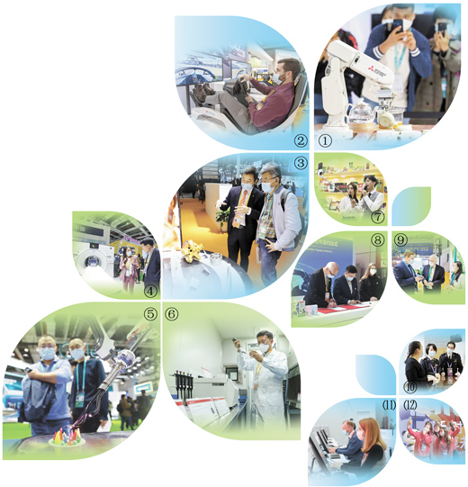图⑨:外国客商在进博会场馆参观交流,寻找商机。