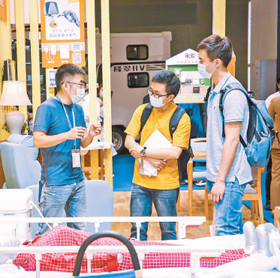 观众在康复护理产品展示区倾听工作人员讲解。 |