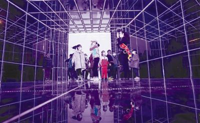 贵州省毕节市科技馆,小朋友们在科普志愿者的带领下参观“投影星空场景”科普项目。