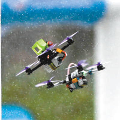 10月17日,参赛选手操作的无人机在比赛中。 |