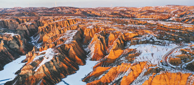 12月3日,陕西省榆林市麻黄梁黄土地质公园雪后初霁。麻黄梁黄土地质公园总面积37平方公里,厚重的黄土层形成了奇特的地貌景观,成为人们旅游、摄影的好去处。图为麻黄梁黄土地质公园雪景。