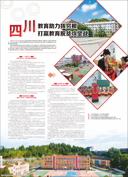 党的十八大以来,四川省委、省政府坚决把打赢教育脱贫攻坚战作为检验增强“四个意识”、坚定“四个自信”、做到“两个维护”的试金石,从最突出的短板补起,从最紧要的任务抓起,举全省之力打赢脱贫攻坚战,啃下“硬骨头”,推动教育脱贫攻坚取得决定性胜利。