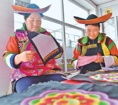 通过驻村工作队牵线搭桥,互助土族自治县的素隆姑刺绣有限公司与索卜沟村签订了盘绣收购订单,发展“政府+企业+农户”的盘绣产业模式。