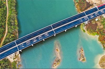 图为高空俯瞰下的杭绍台高速公路。