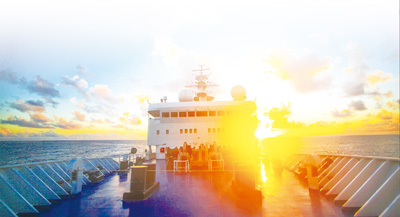 霞光下的远望3号船。 |