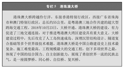 交通超级工程举世瞩目。高速铁路、高寒铁路、高原铁路、重载铁路技术达到世界领先水平,高原冻土、膨胀土、沙漠等特殊地质公路建设技术攻克世界级难题。离岸深水港建设关键技术、巨型河口航道整治技术、长河段航道系统治理技术以及大型机场工程建设技术世界领先。世界单条运营里程最长的京广高铁全线贯通,一次性建成里程最长的兰新高铁,世界首条高寒地区高铁哈大高铁开通运营,大秦重载铁路年运量世界第一,世界上海拔最高的青海果洛藏族自治州雪山一号隧道通车。川藏铁路雅安至林芝段开工建设。港珠澳大桥、西成高铁秦岭隧道群、洋山港集装箱码头、青岛港全自动化集装箱码头、长江口深水航道治理等系列重大工程举世瞩目。中国在建和在役公路桥梁、隧道总规模世界第一,世界主跨径前十位的斜拉桥、悬索桥、跨海大桥,中国分别有7座、6座、6座,世界最高的10座大桥中有8座在中国。(见专栏5)