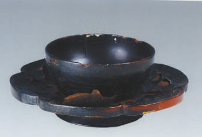 南宋莲瓣形漆托盏(1991年江苏江阴宋墓出土) |