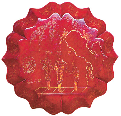 戗金莲瓣形朱漆奁“仕女消夏图”盖面 |