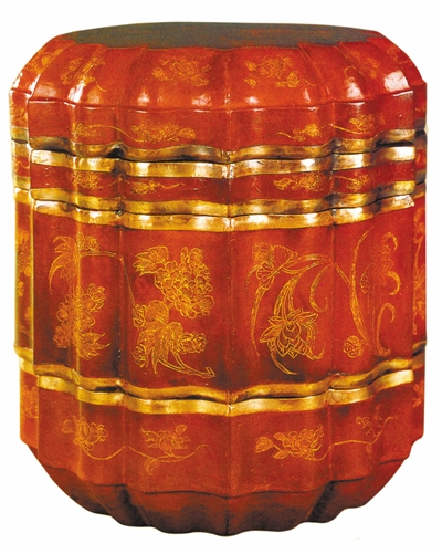 南宋戗金莲瓣形朱漆奁(1978年江苏武进5号宋墓出土) |
