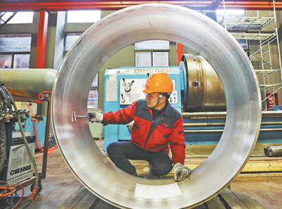 12月24日,在位于江苏淮安金湖县的江苏西派集团(阀门)有限公司内,工人在加班生产加工阀门组件,赶制出口订单。该企业可生产加工2000余种阀门,远销30多个国家和地区。