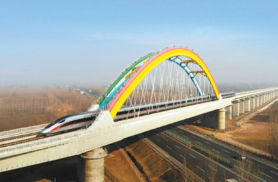 复兴号列车驶过京雄城际铁路霸雄特大桥。 |