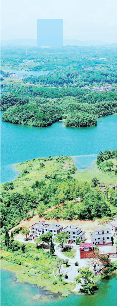 江西吉水,水库环绕村庄,山美、水美、村美。 |