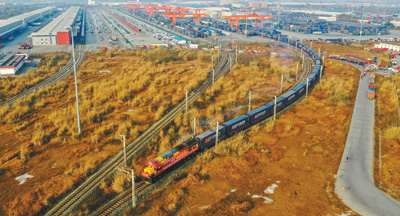 图为2021年首列中欧班列(成渝)号列车从成都国际铁路港驶出。 |