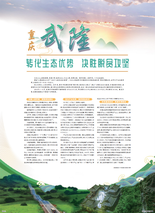 如今,放眼武隆这片沃土,村子更美了,产业兴旺了,村民钱袋子更鼓了。绿色发展让武隆人吃上“旅游饭”,搭上脱贫致富的快车,甩掉了“贫困帽”。