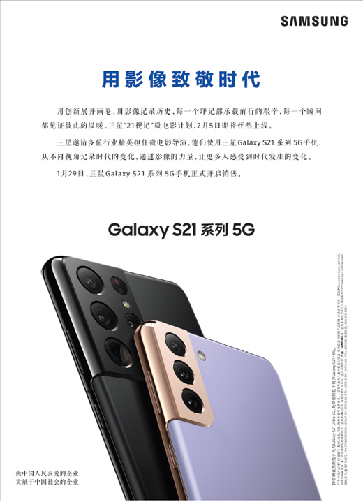 1月29日,三星Galaxy S21 系列 5G手机正式开启销售。
