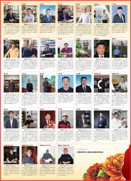 薛方全,曾服役5年。2000年创建重庆民生能源集团,累计捐赠超1.8亿元。获全国劳动模范、优秀中国特色社会主义事业建设者、全国模范退役军人、爱国拥军模范等荣誉称号。集团累计吸纳退役军人近200人。