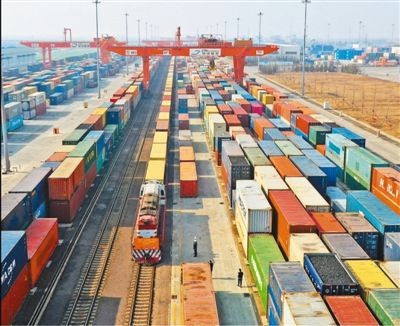 1月31日,由山东高速集团统筹运营的“齐鲁号”欧亚班列上合快线(中国上合示范区—阿塞拜疆巴库)首班,从位于青岛胶州的上合示范区多式联运中心启程。据了解,该趟班列共有100个标准箱,主要载有轮胎、空调等物资。班列经霍尔果斯口岸出境,预计在途运行时间18—20天,比海陆联运用时节省约1/3。