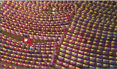 2月1日,河北石家庄市级非物质文化遗产“邵家彩子”传承人邵文清(前)在制作彩子。彩子是春节期间特有的纸质装饰品,寓意吉祥平安,当地人常在除夕时把彩子悬挂在自家大门上方、院落以及街道上,以迎接春节的到来。