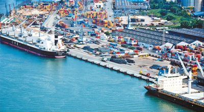 由中国港湾工程有限责任公司总承包、中交第四航务工程局有限公司承建的达累斯萨拉姆港1—7号泊位改扩建工程现场。 |