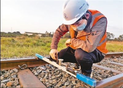 由中国土木工程集团有限公司承建的坦桑尼亚中央线铁路修复改造项目现场,中方工程师用道尺测铁路线路轨距。 |