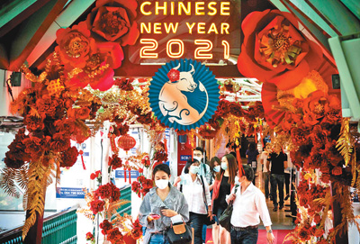 泰国曼谷的购物中心被春节装饰点缀得喜气洋洋。