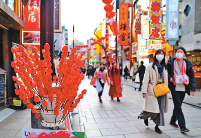 日本横滨中华街举行“春节灯花”活动,张灯结彩迎来牛年新春佳节。