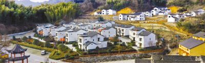 1月29日,阳光照耀下的安徽省六安市金寨县花石乡大湾村,易地扶贫搬迁安置点的徽派民居错落有致地分布在山间。 |