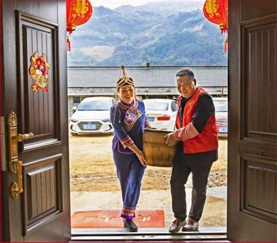 1月22日,浙江省丽水市景宁畲族自治县鹤木岭村安置点,党员志愿者抬着装满年糕坯的甑子走进村民新家,迎接新春佳节。 |
