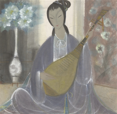中华艺术宫藏林风眠中国画《琵琶仕女》。 |