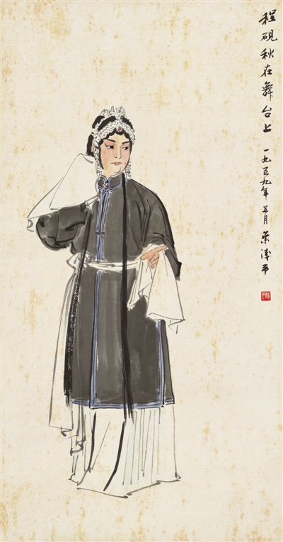 北京画院藏叶浅予中国画《程砚秋在舞台上》。 |