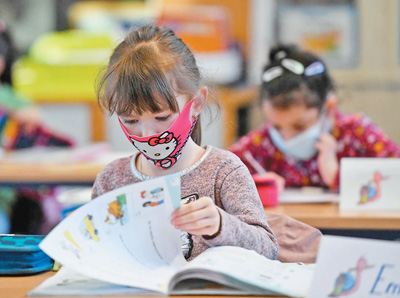 自2月22日起,德国部分联邦州的学校和日托中心复课。图为当天多特蒙德的小学生正在上课。